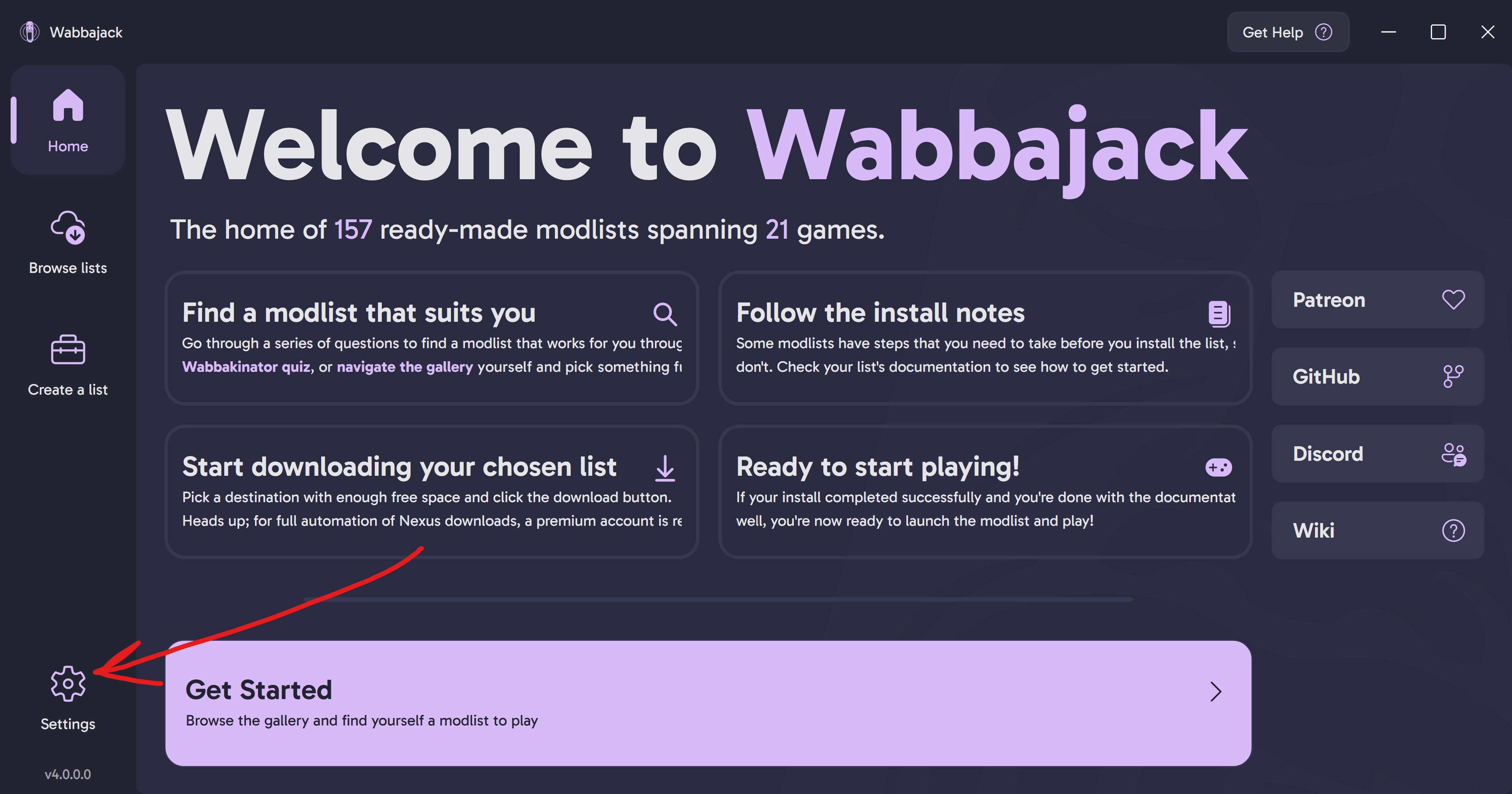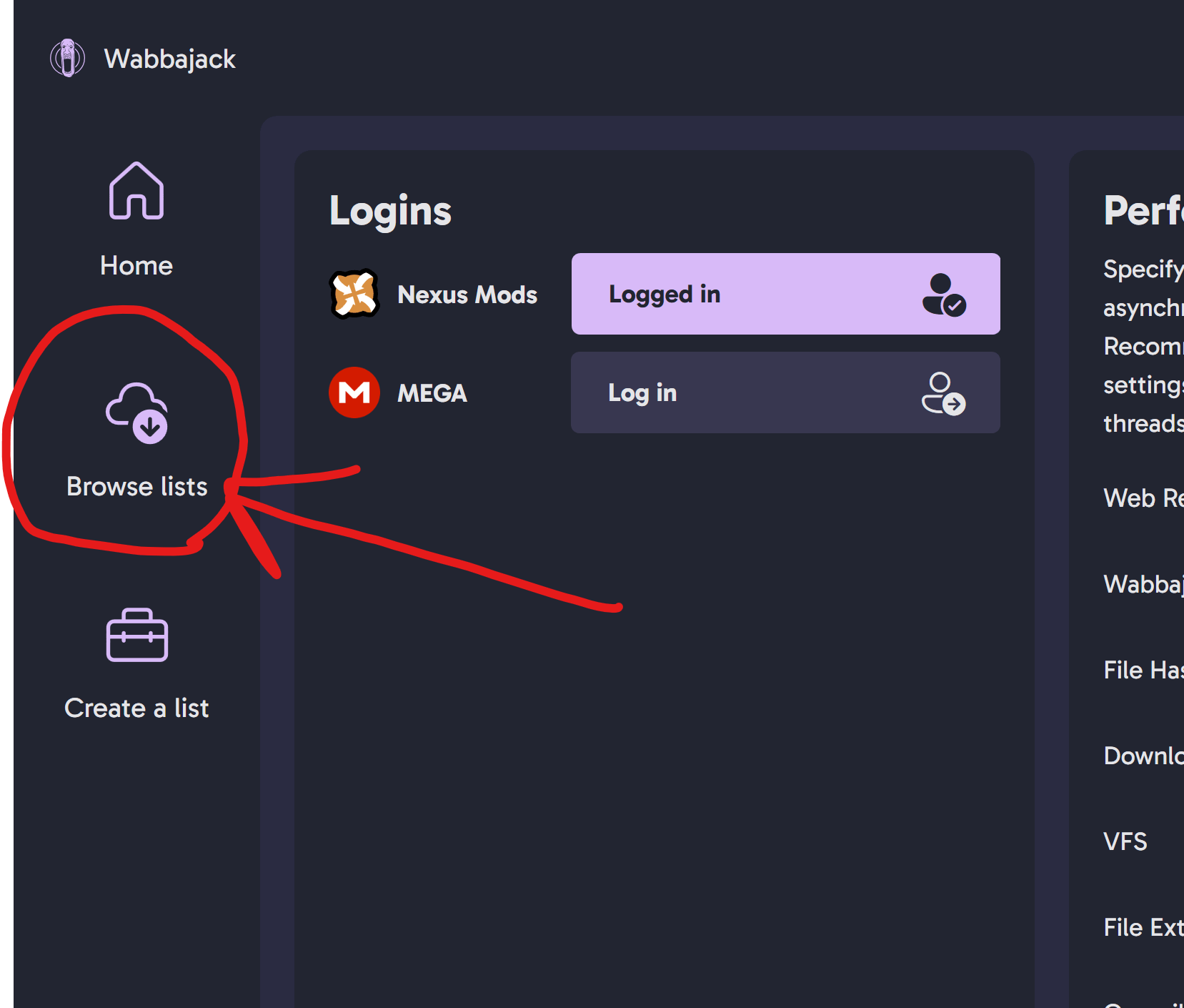 Browse listsin the left menu of Wabbajack UI: