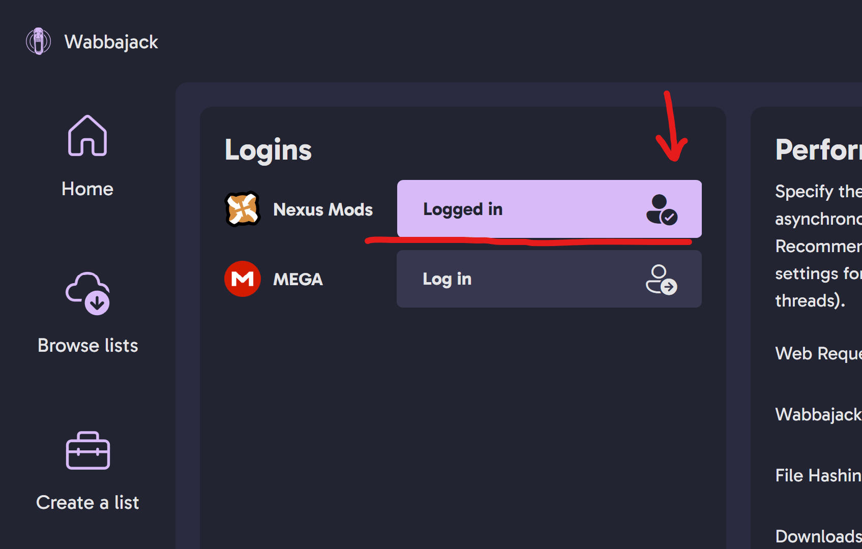 Authorizewhen prompted. Login window will close by itself after authorization. In Wabbajack UI button forLog inwill become light-pink with checkmark, indicating successful login.