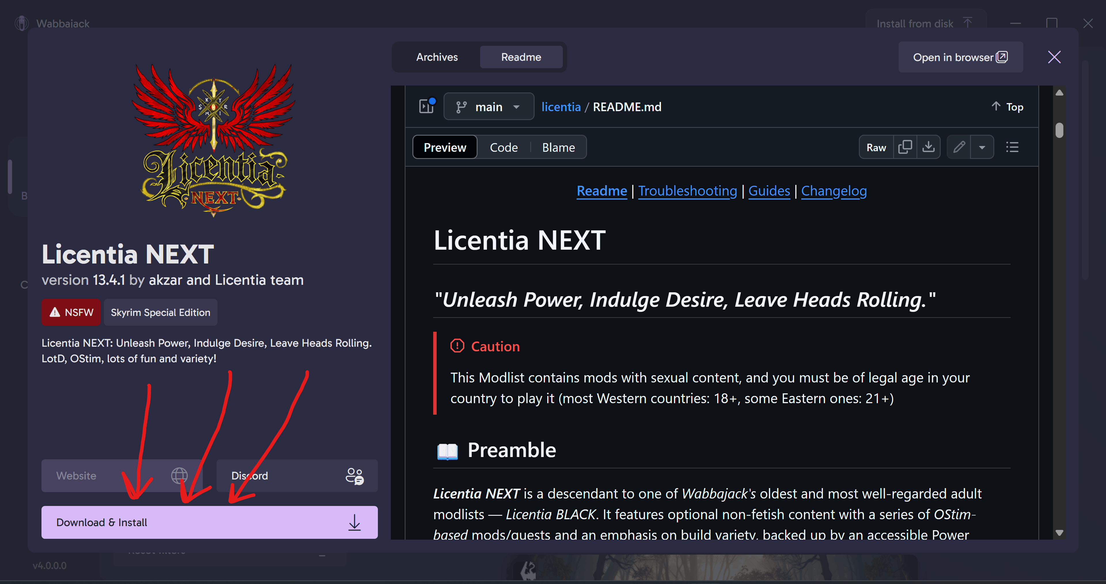 This will download Licentia's Wabbajack file in the background, which is basically an installation package.